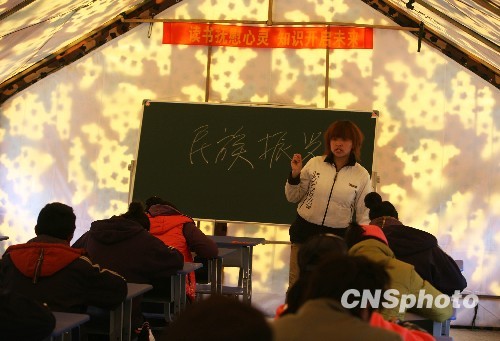 圖:玉樹災(zāi)區(qū)高考帳篷學(xué)校復(fù)課
