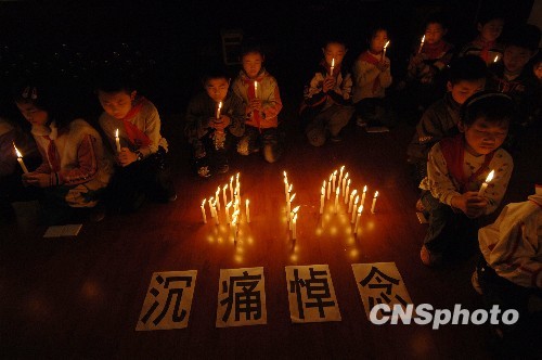 重慶小學(xué)生點(diǎn)燃蠟燭為玉樹遇難者默哀