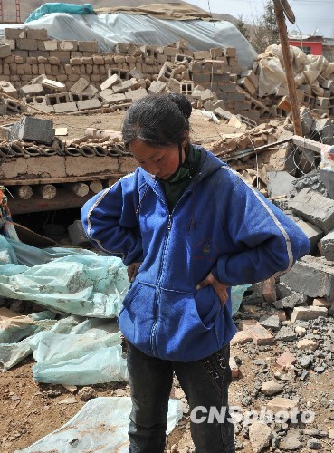 全國(guó)哀悼日:幸存的玉樹姑娘在自家廢墟上致哀