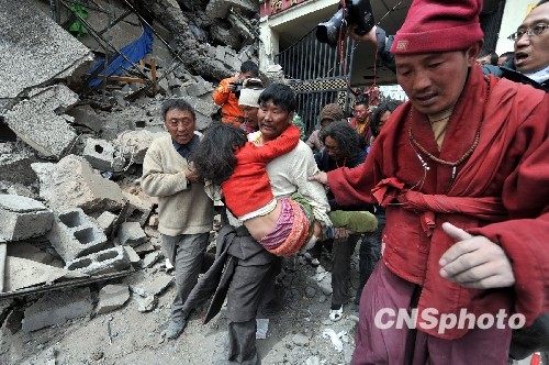玉樹災(zāi)區(qū)13歲藏族女孩被埋54小時(shí)成功獲救
