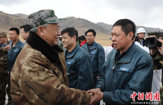 解放軍總長(zhǎng)陳炳德飛抵玉樹檢查部隊(duì)救災(zāi)工作