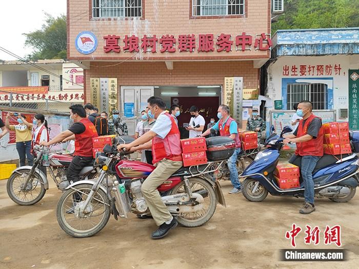村民自發(fā)使用摩托車運(yùn)送救援物資