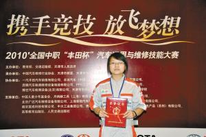 本報(bào)訊 2010年全國職業(yè)院校技能大賽日前在天津結(jié)束,重慶代表團(tuán)奪得9個(gè)一等獎(jiǎng)。我市16歲女生徐潔,在汽車維修技能比賽中技壓眾多男生摘桂,成為這個(gè)項(xiàng)目設(shè)立以來唯一一名奪冠的女生。