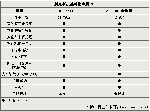 如果說今天對比的兩款車中,新凱越就是這個問題的答案。無鑰匙啟動系統(tǒng)、真皮包裹座椅、前排座椅加熱等高級配置同級別車型無人能及,比起高一級別的B70同樣體現(xiàn)出明顯的優(yōu)勢。AUX/USB/iPod外接音源和超過6個以上的車載音響系統(tǒng),吸引來喜愛音樂的朋友們不成問題。身為車系中的最低配版本,2.0 MT 舒適型的奔騰B70還是有比較亮眼的配置,可調大燈高度、自動空調等成為區(qū)別于新凱越的優(yōu)勢體現(xiàn)。