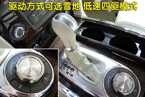 也許看到這里你仍然覺得這確實非常像一款豪華轎車,但是這個金屬材質(zhì)的旋鈕還是清晰的告訴你它真的是一款SUV車型。似乎在你沒有仔細閱讀使用前,你會覺得這個旋鈕似曾相識,但是它的作用卻是驅(qū)動轉(zhuǎn)換的操作系統(tǒng)?梢运矔r切換高速四驅(qū)、低速四驅(qū)及雪地三種模式,如果你覺得這樣很繁瑣,也可以將其調(diào)節(jié)到AUTO自動模式下,它也會根據(jù)實時路況做出聰明的反應(yīng)。