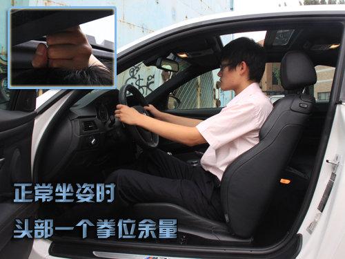 M3基于3系轎跑版打造,車身尺寸方面在原有的基礎(chǔ)上做出了更加符合跑車個(gè)性的處理。車三圍是4615mm*1804mm*1424mm,軸距為2761mm,整個(gè)尺寸都要比普通版進(jìn)口3系大一號(hào),起初因?yàn)閮砷T設(shè)計(jì)產(chǎn)生的對(duì)空間的擔(dān)心有所動(dòng)搖,測(cè)試者178CM。