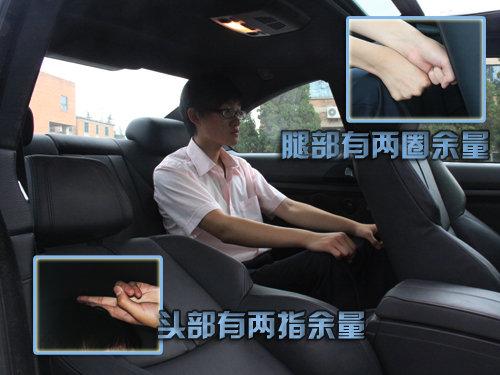 測(cè)試者座椅調(diào)整合適以后,正常坐姿時(shí)頭部有一個(gè)拳位余量,腿部活動(dòng)自由,沒有特別拘束的感覺;后排空間表現(xiàn)良可,測(cè)試者正常坐姿下,腿部空間表現(xiàn)很好,有兩個(gè)拳位余量,頭部表現(xiàn)一般,有兩指空間,測(cè)試者稍有壓迫感。(測(cè)試者身高178CM)