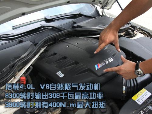 看完了外觀和內(nèi)飾,M3透露出來的“偽”氣質(zhì)似乎比較隱蔽,影影綽綽,F(xiàn)在咱們看看動力的部分。M3搭載4.0L V8自然吸氣發(fā)動機(jī),應(yīng)用Valvetronic (電子氣門技術(shù))、DME數(shù)字式電子伺控系統(tǒng)、雙凸輪軸可變氣門正時控制系統(tǒng) (Bi-VANOS)等電子控制技術(shù),8300轉(zhuǎn)時輸出309千瓦最高功率,3900轉(zhuǎn)時擁有400N.m最大扭矩。爆裂的孤狼性格此刻終于暴露了。