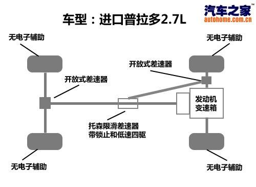 以下四驅(qū)系統(tǒng)介紹及測(cè)試只代表進(jìn)口普拉多2.7L車型的水平,國(guó)產(chǎn)4.0車型四驅(qū)系統(tǒng)與之不同。