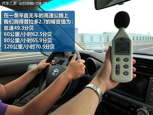 舒適性是普拉多的強項,日常行駛時的噪音能夠明顯感覺到是非常低的,這一點在之后的測試中得到了驗證。我們在一條平直無車的高速公路上測得普拉多的噪音值為:怠速49.3分貝;60公里/小時62.5分貝;80公里/小時65.9分貝;120公里/小時70.5分貝。