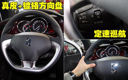 雪鐵龍DS3采用了三幅式方向盤,配以銀色的裝飾面板,整體感覺運動時尚。這款方向盤的包覆材料為真皮材質(zhì),質(zhì)地較軟手握感覺比較舒適。