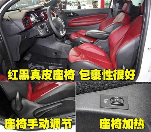 雪鐵龍DS3整車座椅均采用紅黑真皮材料,駕駛席座椅前后、靠背角度、座椅高度為手動調(diào)節(jié)。各拉手四周做工較細(xì)致,沒有感覺到松垮的感覺。