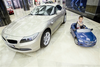 今天上午,翠微廣場(chǎng)一層寶馬生活館內(nèi),兩輛兒童電動(dòng)車(chē)被擺在店鋪中最顯著的位置,吸引了眾多顧客的眼球。