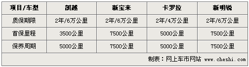 選擇的四款車型都是市場(chǎng)上相對(duì)銷量比較靠前的熱門車型,新凱越是別克旗下的緊湊級(jí)家用車,質(zhì)保期為2年/6萬(wàn)公里,一個(gè)合資車比較常規(guī)質(zhì)保期限。同為2年/6萬(wàn)公里還有一汽大眾品牌的新寶來(lái),以及上海大眾斯柯達(dá)的新明銳。豐田卡羅拉是四款車型中唯一一款日系車型,2年/4萬(wàn)公里的質(zhì)保期比較起來(lái)少有遜色。