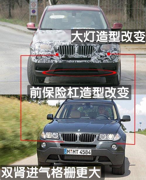 與目前的車型相比,這款 X3車型的尺寸幾乎沒有發(fā)生什么變化,其車型風(fēng)格體現(xiàn)了CS概念車上的一些元素。整體車身外觀沒有發(fā)生什么變化,但這款新車型預(yù)期將采用更為突出的散熱格柵及新的前車燈設(shè)計(jì)。除了車身外觀上的一系列改進(jìn)外,新車型還將采用一系列新配置,以此來迎戰(zhàn)來自?shī)W迪與奔馳的競(jìng)爭(zhēng)。新車型配置了寶馬X6車型上的夜間平視顯示器,其雙氙氣前車燈還具有環(huán)景照明功能。