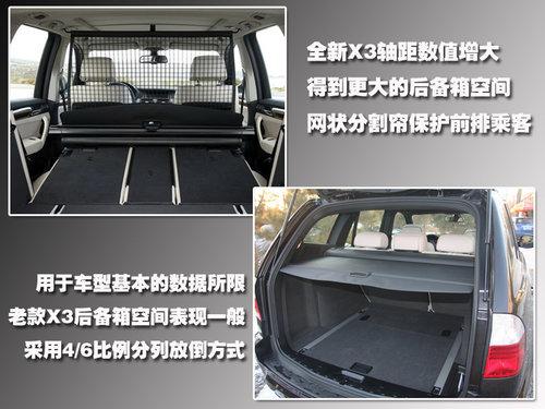 老款X3由于車(chē)身數(shù)據(jù)的限制,后備箱空間表現(xiàn)一般,4/6的后排座椅放到比例,空間變化比較靈活。全新X3后備箱空間相對(duì)較大,寬度跟深度都有著很好的表現(xiàn),后排座椅采用40:20:40的放倒設(shè)計(jì),這樣的處理非常靈活,網(wǎng)狀簾保護(hù)了乘客不會(huì)因?yàn)橥蝗坏闹苿?dòng)收到貨物撞擊的傷害。