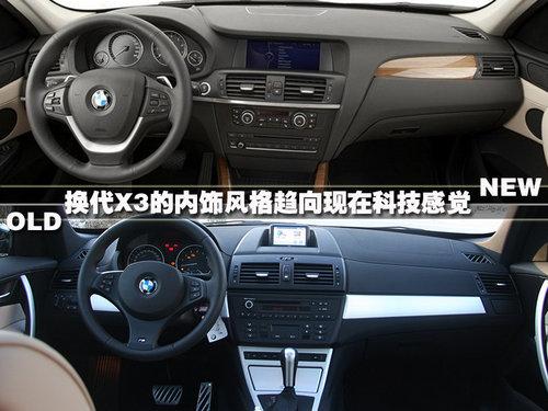 內(nèi)飾的風(fēng)格,老款X3經(jīng)過(guò)將近4年的歲月,設(shè)計(jì)風(fēng)格顯然有點(diǎn)趕不上潮流,大面積顏色裝飾感覺(jué)缺乏質(zhì)感,中控臺(tái)的設(shè)計(jì)也比較有復(fù)古。換代X3的內(nèi)飾采用了寶馬全新的設(shè)計(jì)感覺(jué),簡(jiǎn)單的中控臺(tái)設(shè)計(jì)很直觀,桃木材質(zhì)的使用更加突出了內(nèi)飾的高品質(zhì)。
