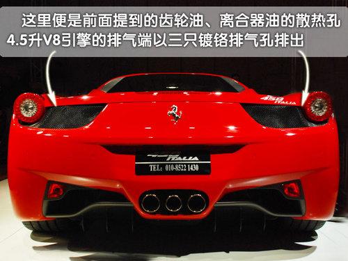 在458Italia的車尾兩側(cè),同樣分別設(shè)計有兩處通風(fēng)口,當氣流最終達到車尾的時候458Italia的設(shè)計者再一次將氣流轉(zhuǎn)變?yōu)橛幸嬗邶X輪油和離合器油散熱的氣流,從車尾將散熱器的熱量帶走。