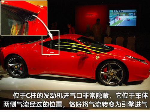當通過車身兩側(cè)的氣流經(jīng)過駕駛室后方的C柱時候,隱藏在C柱內(nèi)部的引擎進氣口恰好在這里等待著新鮮的空氣。通過位于C柱內(nèi)的引擎進氣口,發(fā)動機將獲得充足的新鮮空氣,并且法拉利的工程師還告訴我們:當車輛的時速達到100公里/小時開始,由于氣流經(jīng)進氣口以及進氣道所產(chǎn)生的“動態(tài)增壓”效應(yīng),會使發(fā)動機的功率額外增加5馬力,最終實現(xiàn)570匹馬力的最大功率。