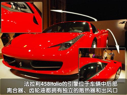 轉(zhuǎn)到車頭的上方您會發(fā)現(xiàn)在458Italia的大燈一側(cè)會有一個隱藏的通風(fēng)口,這里的設(shè)計能夠讓從車頭過來的氣流在經(jīng)過這里的時候進入通風(fēng)口,使其變?yōu)橐嫔崞饕约扒拜唲x車系統(tǒng)的冷卻氣流,類似這樣的巧妙設(shè)計還有很多。