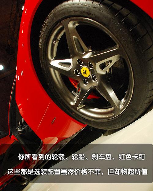 在法拉利的裝備表中很多東西都是選配的,例如外觀的顏色;輪胎、輪轂的尺寸和樣式甚至包括輪轂中央那個小罩子的顏色,以及內(nèi)飾的顏色和用料。所以任何一位法拉利車主的法拉利理論上都是獨一無二的,當(dāng)然這一切也需要車主去付出高昂的定制費。