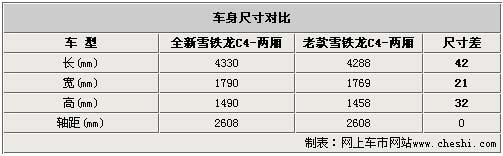 全新的雪鐵龍C4并不屬于小改款車型,而是一款改的非常徹底的全新車型。這一點我們通過外形就可以很明顯的看出來。在車身尺寸方面,新車型比老款車型略大,在長/寬/高方面分別增加了近5里米、2厘米以及3厘米。而在軸距方面則沒有變化,行李箱空間達到了408升與競爭對手如歐寶-雅特、標致-308、福特-?怂沟认啾戎伦畲。