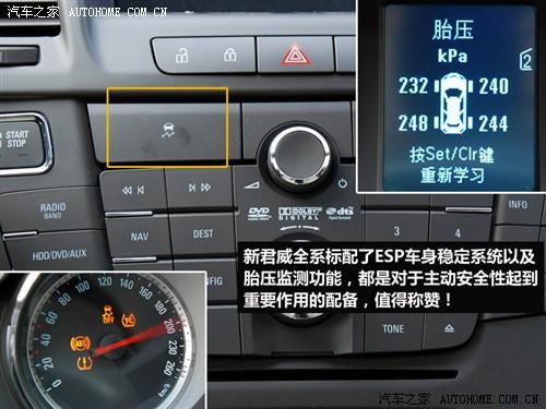 君威全系都備有胎壓監(jiān)測(cè)系統(tǒng),直接式胎壓監(jiān)測(cè)將傳感器植入輪胎內(nèi),實(shí)時(shí)監(jiān)控每條輪胎的胎壓狀況,駕駛員可以從行車電腦中直接調(diào)出壓力數(shù)值,做到心中有數(shù),雖然有時(shí)會(huì)有數(shù)值不準(zhǔn)的狀況發(fā)生。另外2010款君威全系都配備了安吉星系統(tǒng),購(gòu)車者可免費(fèi)使用一年,體驗(yàn)定位、呼叫和緊急救援等服務(wù)。