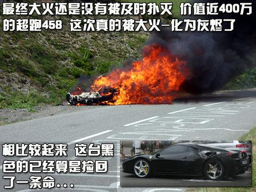 相信大家都還記得前些日子在法國巴黎發(fā)生的一起汽車自燃事件,自燃的主角是一臺全新法拉利458Italia。價值近400萬的一臺超級跑車發(fā)生自燃,讓每一個人都為它捏了一把汗,可想車主更是焦急的上跳下竄。由于及時的救助,那臺黑色的458沒有被完全燒光,至于能否繼續(xù)上路,恐怕是兇多吉少。就在同一周內,瑞士也發(fā)生了同樣的一幕,一臺紅色的458在郊區(qū)山路旁發(fā)生自燃,這次大火沒有留情,徹底將這臺超跑吞噬一空。