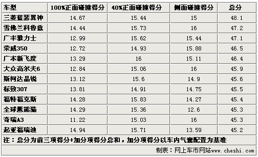 通過以上表格,我們可以看出這樣一個現(xiàn)象,12款車當中涉及自主品牌、日韓系列和德美系列各國車型。很多人一直堅信德美系的車要比其他兩類車要結(jié)實,但事實證明他們的成績也并非那么無懈可擊?磥鞢-NCAP的鐵證也可以做一回流言終結(jié)者了,不過這12款車全部達到了45分以上,也就是C=NCAP五星級安全標準。至于傳說中的五星半級別,在比較常見的國產(chǎn)車中只有雅閣和CR-V達到。
