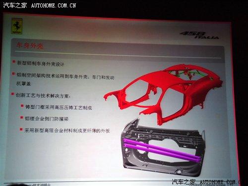 法拉利458 Italia采用了新型鋁制空間架構(gòu)模塊化底盤(pán)設(shè)計(jì),不僅大大降低了設(shè)計(jì)和制造的成本,而且在維修為更換部件方面更是有著很大優(yōu)勢(shì),各個(gè)部件可以單獨(dú)進(jìn)行更換配件,458 Italia在局部還使用了航空鋁制材料,鋁制結(jié)構(gòu)在重量和強(qiáng)度方面有相比于鋼制結(jié)構(gòu)車(chē)型要出色。