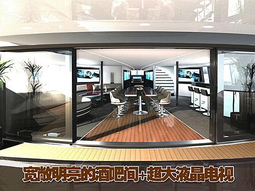 從官方設(shè)計(jì)圖上我們可以看到起奢華的內(nèi)部裝飾,液晶顯示屏的操控界面,寬大舒適的駕駛艙座椅,在其船艙還配置了寬敞的酒吧間,木質(zhì)的地板以及灰色的裝飾增添了雅致的風(fēng)格。此外還有舒適的長(zhǎng)沙發(fā)以及小型會(huì)議桌等等。