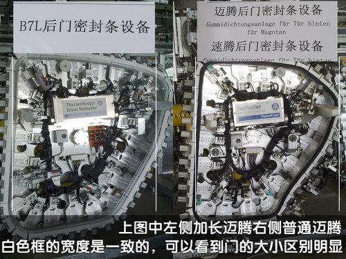 是的,在生產線上記者確實看到了寫有“B7L”字樣的車門試裝區(qū)域,但是廠家工作人員在這個部分是不允許拍照的所以沒有詳細照片。但是從車門的“夾具”(這是我們自己起的名字)來看,不同的邁騰(B7)與加長后的邁騰(BL),在門的大小上有非常明顯的區(qū)別,并且我們從工作人員那里也獲得了B7L是加長邁騰的肯定答案。