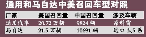 這些在美國(guó)召回的車,在中國(guó)是否有出售呢?答案是肯定的。據(jù)本報(bào)昨天查詢,通用和馬自達(dá)的上述缺陷車型,在華銷售數(shù)量涉及近兩萬(wàn)輛。