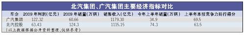 2009年,北汽以124.3萬輛的銷量位居國內(nèi)“四小”汽車集團(tuán)之首,是60萬輛級別的廣汽的兩倍。今年上半年,北汽集團(tuán)整車生產(chǎn)73.3萬輛,銷售74.6萬輛,是上半年完成34.9萬輛的廣汽的兩倍有余。北汽之所至能大幅度領(lǐng)先于廣汽,主要是因為福田汽車,商用車是廣汽的短板之一。