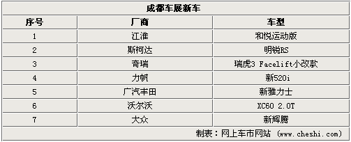 西部最具規(guī)模和影響力的2010第十三屆成都國際車展,將于9月18日-24日在成都世紀(jì)城新國際會展中心隆重舉行,主題為“綠色科技 樂駕成都”。雖然成都車展的影響力不及北京、上海、廣州,但西部尤其是四川汽車市場需求相當(dāng)旺盛,在本屆車展上將有7款不同類型的新車首發(fā)。