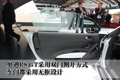 奧迪R8 GT采用雙門側(cè)開的方式,雖然不想蘭博基尼剪刀門式那樣拉風(fēng),但無框的設(shè)計依然在低調(diào)中蘊(yùn)藏著不羈的個性。奧迪R8 GT的車門內(nèi)側(cè)把手也采用輕量化材料打造,而且車門迎賓踏板上還印出了彰顯身份的字樣。