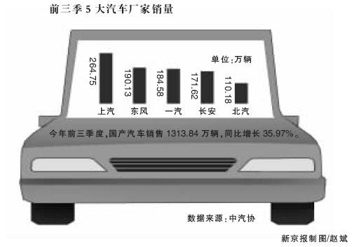 中國汽車工業(yè)協(xié)會昨日發(fā)布最新統(tǒng)計(jì)數(shù)據(jù)稱,今年前三季度,國產(chǎn)汽車產(chǎn)銷1308.27萬輛和1313.84萬輛,同比增長36.10%和35.97%,逼近去年全年水平。而全年銷量或?qū)⒊^美國歷史最高銷量,達(dá)到1700萬輛,并在2015年實(shí)現(xiàn)2500萬輛產(chǎn)能規(guī)模。