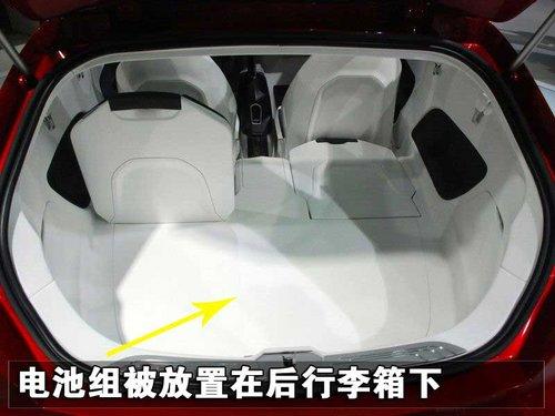 作為一款電動概念車IBE的電池組被放置在后行李箱下部,這是目前比較普遍的設計,原有的加油口變成了充電接口,目前所曝光的數據是電池組蓄電量為18千瓦時,重量方面暫時不得而知。