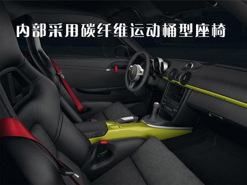 相對(duì)Cayman S,其重量減輕了55kg, 整備質(zhì)量?jī)H1295kg。搭配獨(dú)特的固定式后擾流板、優(yōu)質(zhì)銀色車輪以及眾多內(nèi)部和外部運(yùn)動(dòng)風(fēng)格部件,確保了獨(dú)具個(gè)性的車輛外型。帶有黑色邊框的大燈、黑色車外后視鏡以及采用黑色或銀色對(duì)比色的車身“PORSCHE”標(biāo)志均彰顯了經(jīng)典保時(shí)捷賽車的設(shè)計(jì)特色。值得一提的是,它配備了整個(gè)保時(shí)捷家族中最輕的合金輪轂,整套輪轂組件的重量不到40kg。