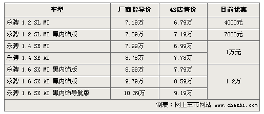 據(jù)4S店銷(xiāo)售人員介紹:目前新樂(lè)騁最高優(yōu)惠可達(dá)1.2萬(wàn)元,但全系無(wú)現(xiàn)車(chē)全部需要預(yù)訂。由于樂(lè)風(fēng)的優(yōu)惠幅度較大,并且銷(xiāo)量要比樂(lè)騁好很多,所以新樂(lè)騁產(chǎn)量較小。如您喜歡新樂(lè)騁,可通過(guò)4S店預(yù)訂車(chē)輛,預(yù)定時(shí)間在2周至1個(gè)月之間。