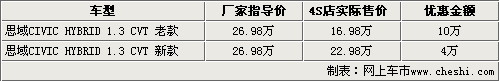 作為東風(fēng)本田以整車進(jìn)口形式引入國內(nèi)銷售的思域混動(dòng)力車型,自上市以來銷量的逐年遞增并獲得了良好的市場反響,而它的繼任者新款思域混動(dòng)力也于今年6月份正式上市銷售。近日根據(jù)網(wǎng)上車市價(jià)格檢測系統(tǒng)顯示,本田混合動(dòng)力思域出現(xiàn)了大幅優(yōu)惠,新款車型優(yōu)惠4萬元,老款車型優(yōu)惠幅度更是達(dá)到了10萬元。具體車型售價(jià)見下表: