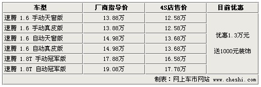 優(yōu)惠幅度有所增加 速騰全系優(yōu)惠1.3萬元