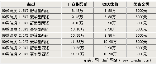 據(jù)奇瑞汽車4S店銷售人員介紹,瑞虎3目前現(xiàn)車齊全,除四驅(qū)車型只接受預(yù)訂,大概兩周以后可以提到現(xiàn)車外,2.0L自動擋車型以及1.6L和1.8L車型的現(xiàn)車比較齊全,目前全系車型都可以優(yōu)惠6000元,歡迎消費者到店賞車試駕。