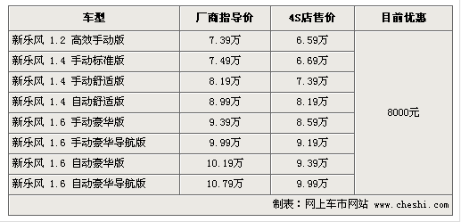 據(jù)4S店銷售人員介紹:目前雪佛蘭新樂風(fēng)全系優(yōu)惠達(dá)8000元,較之前優(yōu)惠幅度持平。1.2車型目前無現(xiàn)車,預(yù)訂需等1-3周左右。由于1.2升較小的排量與新樂風(fēng)略大的車身配比并不十分完美,所以選擇1.4升排量車型消費(fèi)者較多,同時(shí)現(xiàn)車也非常充足,顏色較齊全。1.6升車型目前現(xiàn)車較少,顏色也不夠齊全,銀色車型較多,預(yù)定需等待1-2周時(shí)間。