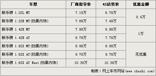 雪佛蘭新樂騁是在老款樂騁的基礎上,針對中國市場需求升級的一款A0級轎車。無論外觀、內(nèi)飾還是油耗方面,新樂騁都有著出色的表現(xiàn)。它的競爭對手是POLO、206等車型,但與其對手相比,新樂騁表現(xiàn)得并不突出。近日據(jù)網(wǎng)上車市價格系統(tǒng)檢測顯示,新樂騁有1萬元的最高優(yōu)惠幅度,具體車型價格請看下表: