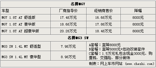 據(jù)MG名爵經(jīng)銷商處銷售人員介紹,目前MG7和MG3 SW都有充足的現(xiàn)車,只有部分車型需要預訂,MG7最高可優(yōu)惠8千元,而MG3 SW則有三重好禮可選其一,當然最直接的就是直降8千元,而1.5萬元的大禮包的優(yōu)惠也挺大的,如果你喜歡個性車就選擇炫動改裝還可在優(yōu)惠五千元。