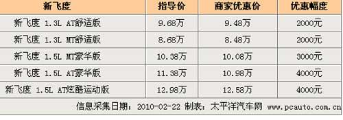 節(jié)日的喜慶氣氛慢慢退去,但車市的火爆程度卻依舊。近日筆者從北京地區(qū)廣汽本田4S店獲悉,飛度車型目前仍然貨源緊缺,現(xiàn)在預(yù)定最高可享受4000元的優(yōu)惠,詳細(xì)價格見下表:
