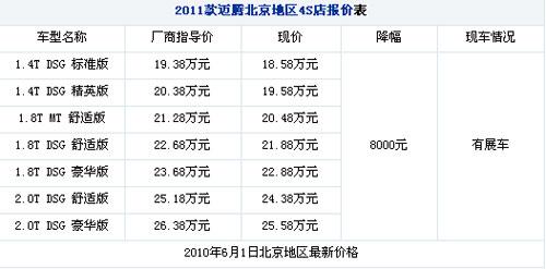 近日,愛卡汽車從一汽大眾經(jīng)銷商處了解到,2011款大眾邁騰優(yōu)惠8000元,現(xiàn)車顏色不全,以黑色為主。詳情請(qǐng)見下表: