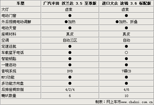 這兩款SUV車(chē)型均搭載的是V型6缸發(fā)動(dòng)機(jī),排量都在3.5升這個(gè)區(qū)間。但是在發(fā)動(dòng)機(jī)技術(shù)上卻存在著本質(zhì)區(qū)別。廣汽豐田漢蘭達(dá)的發(fā)動(dòng)機(jī)配備了雙VVT-i技術(shù),實(shí)現(xiàn)了卓越的動(dòng)力輸出,同時(shí)進(jìn)一步提高了燃油經(jīng)濟(jì)性。進(jìn)口大眾途銳則配備的是動(dòng)力更加突出FSI發(fā)動(dòng)機(jī),該發(fā)動(dòng)機(jī)采用燃油缸內(nèi)直噴技術(shù),這一點(diǎn)從最大功率和最大扭矩的輸出就可以看出。在變速器方面途銳則是略勝一籌,配備了6速手自一體變速箱,令變速更平滑順暢,該變速器還帶有DSP的智能動(dòng)力換檔系統(tǒng),能辨認(rèn)出您的變速習(xí)慣,使駕駛員充分享受到駕駛的樂(lè)趣。進(jìn)口大眾途銳剎車(chē)系統(tǒng)采用的是散熱性能良好的前后通風(fēng)盤(pán),漢蘭達(dá)采則采用的是前通風(fēng)后實(shí)心。