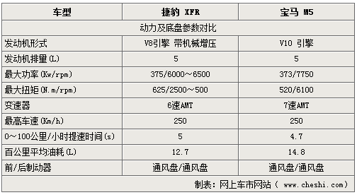 捷豹的新款轎跑車型-XFR上市后,為運動豪華車市場帶來全新的力量。成為09年備受矚目的高性能車型之一。作為兼顧跑車性能與轎車質(zhì)感的豪華車型,捷豹XFR的價格定位也相當(dāng)不菲,188.8萬的價格下也只有寶馬的M5可以堪稱勢均力敵的對手。下面我們就來看看兩款車到底誰更有魅力。